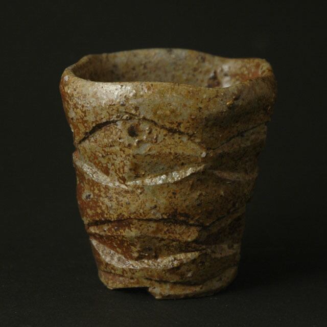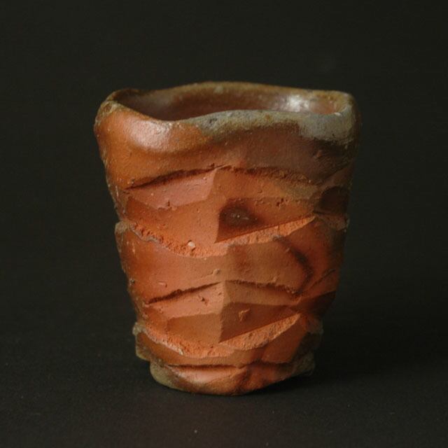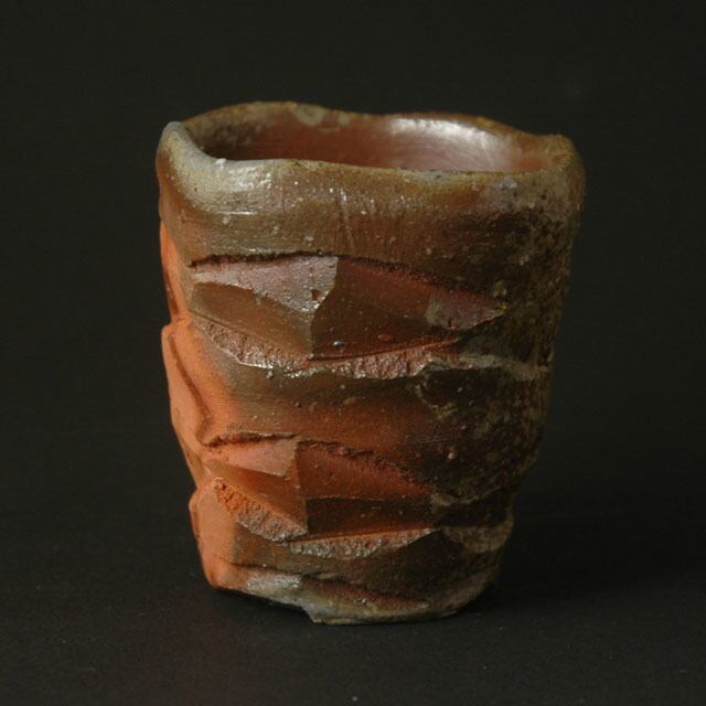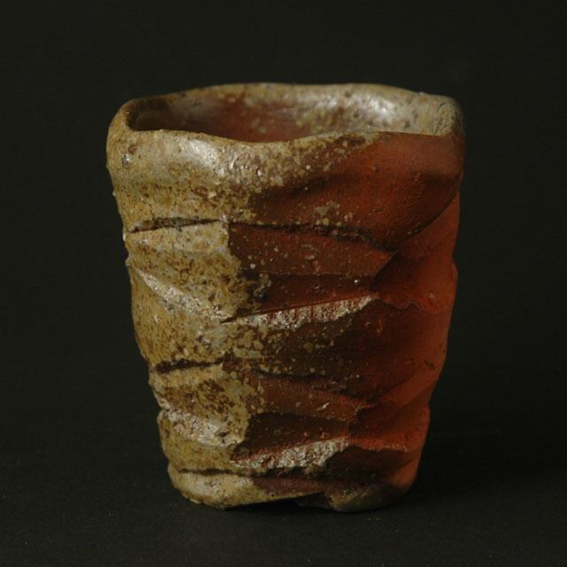 備前窯変鎬酒呑(ぐい呑み)【桐箱付】B001 内田和彦