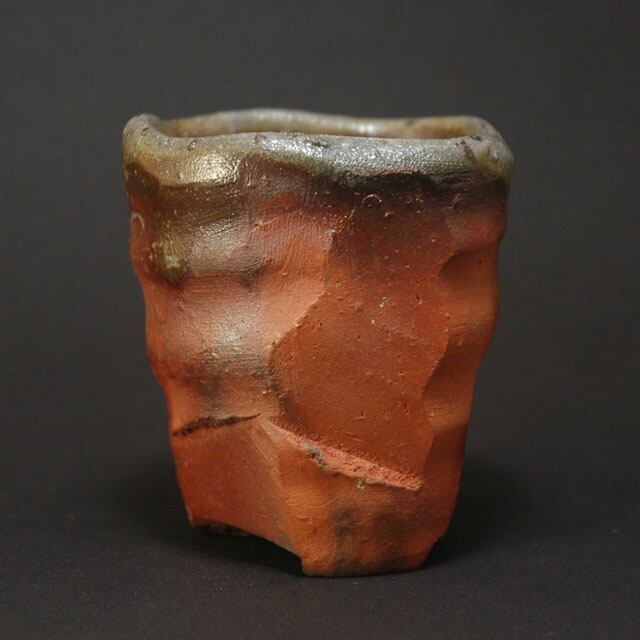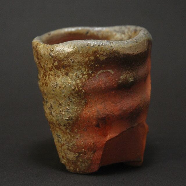 備前窯変鎬酒呑(ぐい呑み)【桐箱付】B012 内田和彦