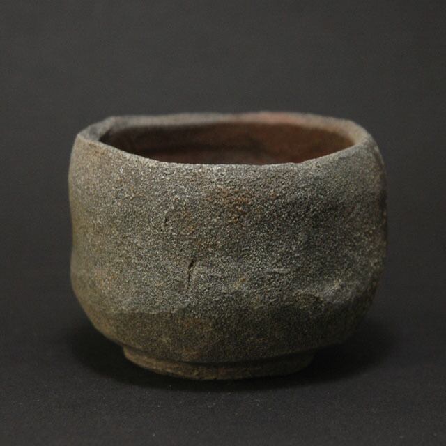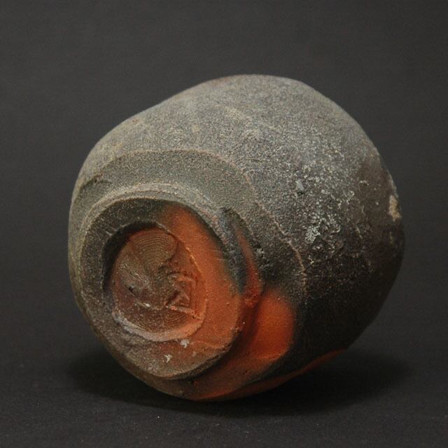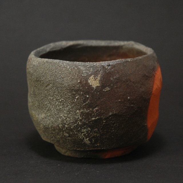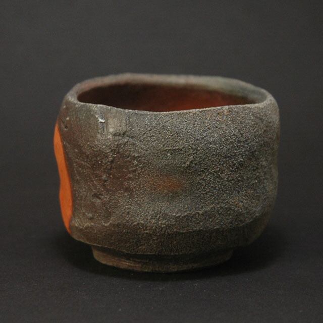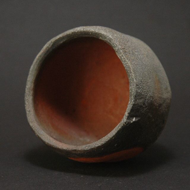 灰被りのグレーにボタ抜けの朱色が印象的な酒呑です。