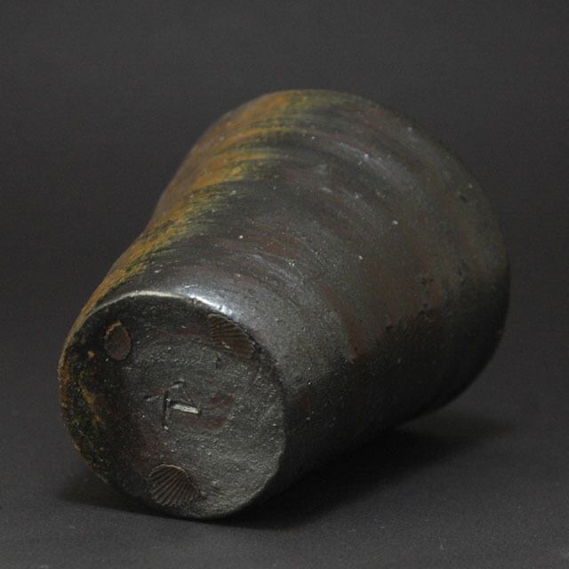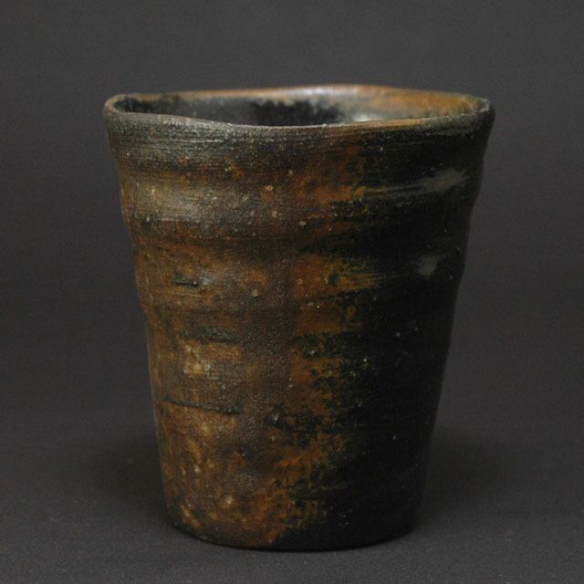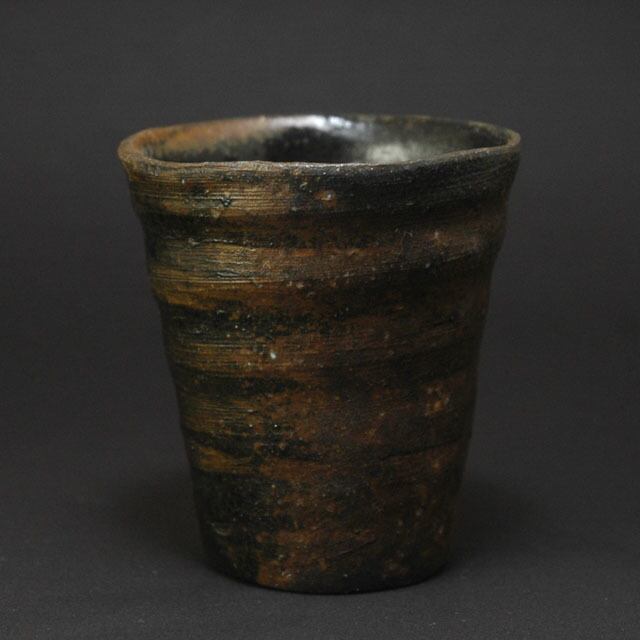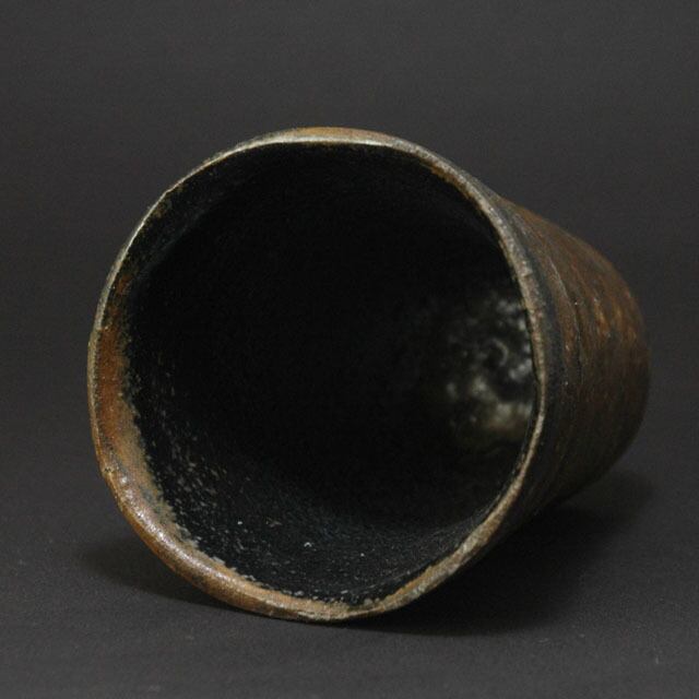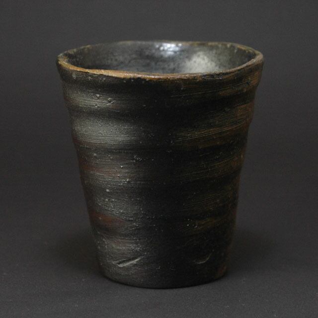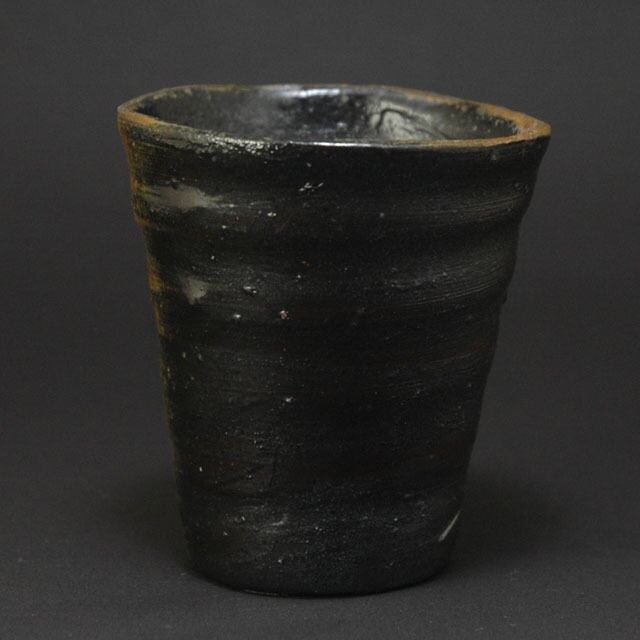 黒く発色する塗り土を施してから焼成した黒備前冷酒盃。