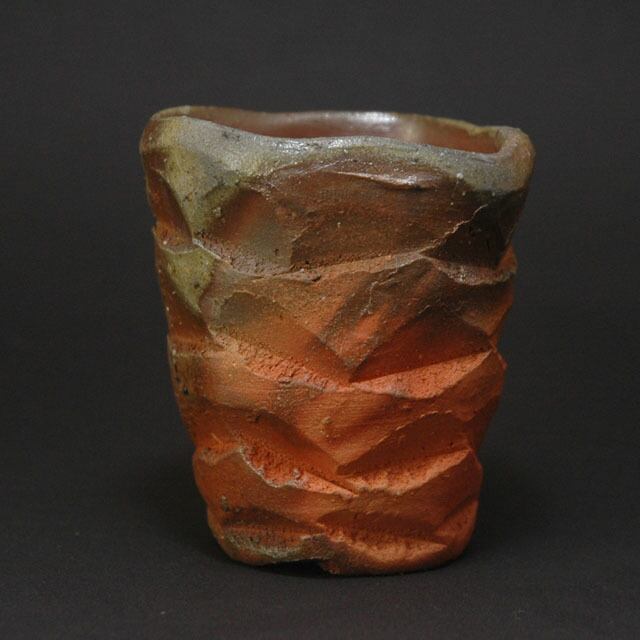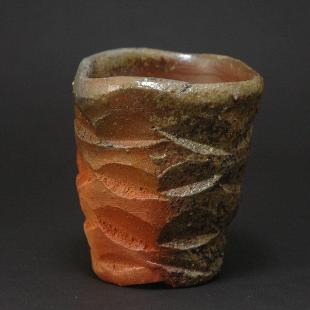 備前窯変鎬酒呑(ぐい呑み)【桐箱付】B024 内田和彦