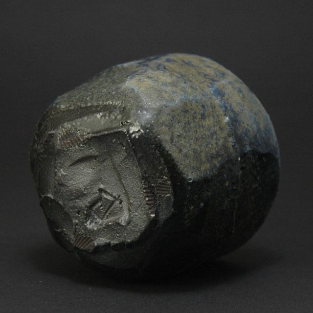塗り土中のコバルトが発色し、ブルーを呈している。