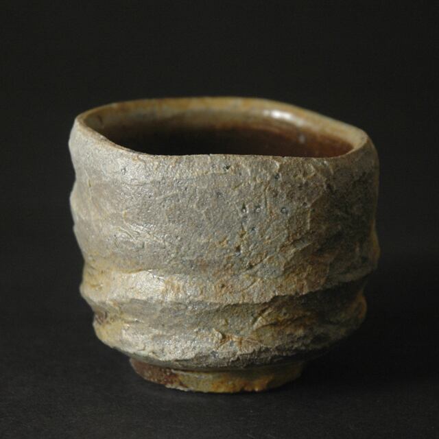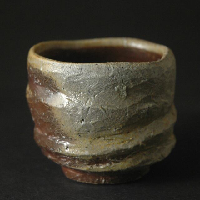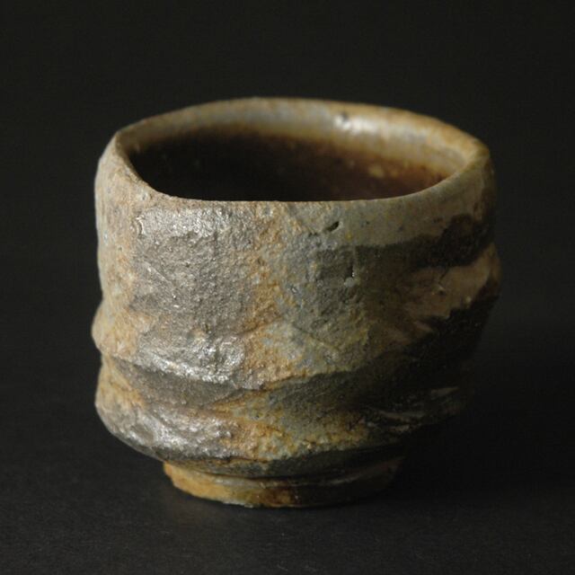 ろくろ成形後、外側を箆でろくろ目に沿って削りだされた酒呑(ぐい呑み)。