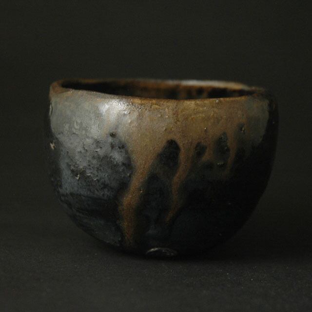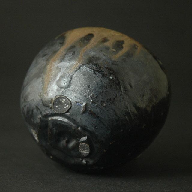 焼成前に、塗り土が施されています。塗土には、鉄・マンガン・コバルト等が含まれています。胡麻(灰)がよく溶け流れた姿が見どころの一品です。