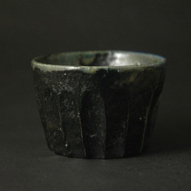 備前黒鈷鎬酒呑(ぐい呑み)【桐箱付】 B079 内田和彦