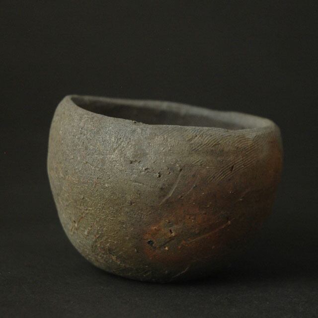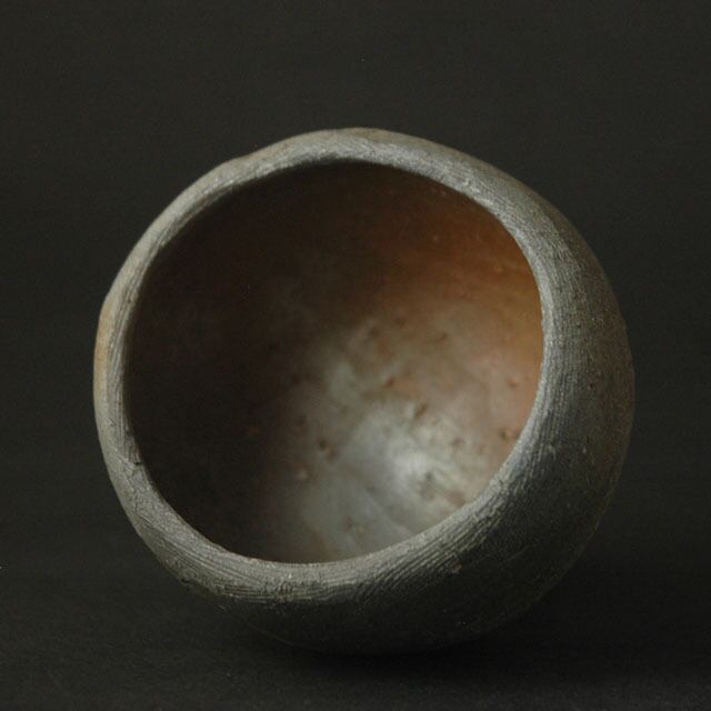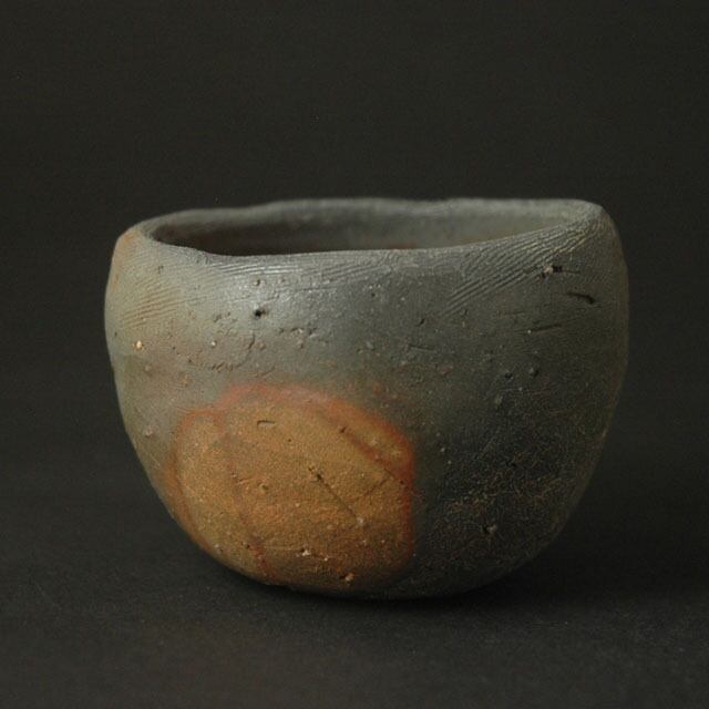 ろくろ成形された後、箆で成形されたぽってりした形の酒呑。