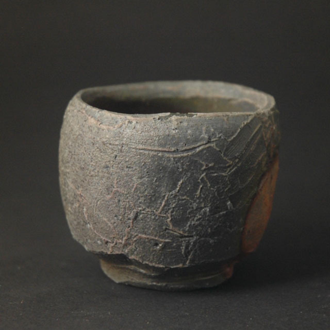 轆轤成形後、箆で内外共に削られ成形された作品です。